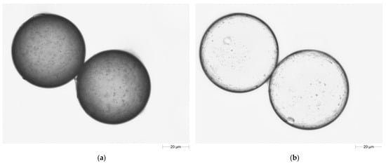 A Netzsch STA 449 F1 Jupiter thermal analyzer (Netzsch, Selb, Germany) was used for the TG analyses. They started at 35 °C and ended at 700 °C. The measurements were conducted in helium or synthetic air (flow = 20 mL/min),. The heating rate was equal 10 °C/min, whereas the sample mass was about 10 mg. To remove the absorbed water and thus obtain reliable information on the decomposition of the copolymers, the samples were heated at 100 °C before the analyses. All of the measurements were conducted in Al2O3 pans (mass of about 160 mg). As a reference, an empty Al2O3 pan was applied. The volatile products emitted during the heating of the selected copolymeric microspheres were analyzed by a Bruker Tensor 27 FTIR spectrometer (Bruker Corporation, Hanau, Germany) coupled online to a Netzsch STA instrument. The spectrometer was connected by a Teflon transfer line (2 mm diameter) heated to 200 °C to avoid the condensation of volatiles. The FTIR spectra of the gaseous products were collected in the range of 600–4000 cm−1 with sixteen scans per spectrum. The required measurement resolution was 4 cm−1.