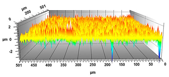 Three-dimensional topography of the polished surface of the PM Ti−5.1Al−2.0Sn−3.7Zr−0.3Mo−0.3Si alloy.