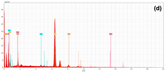 Fe@RbLTO-modified catalyst with its corresponding EDX mapping pictures (a–d).