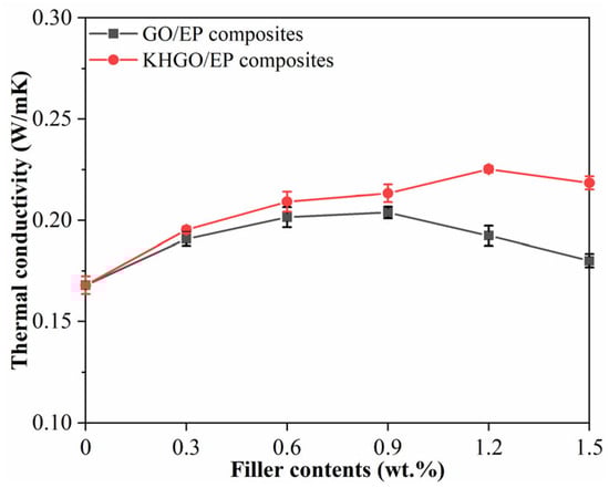 Thermal conductivity of GO/EP composites and KHGO/EP composites with different filler content.
