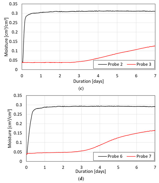 Figure 4 shows the visible changes in moisture captured via the TDR equipment for the absorption process.