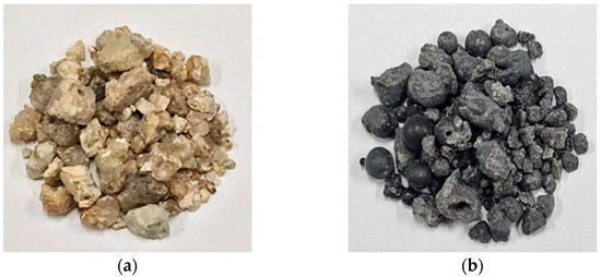Ground granulated blast-furnace slag (GGBFS) (Daehan slag, Gwangyang, Republic of Korea) and fly ash (Dangjin Thermal Power Plant, Dangjin, Republic of Korea) were used. Alkali activators, including CaO, Na2SiO3, CaCl2, Ca(HCOO)2, and NaOH (Daejung, Republic of Korea), were in granular form as described previously [17]. Natural sand (NSA) with a specific gravity of 2.60 g/cm3 and a fineness modulus (FM) of 2.45 and FSA (POSCO, Pohang-si, Republic of Korea) with a specific gravity of 3.04 g/cm3 and FM 3.64 were used as fine aggregates.