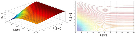 For analysing the dynamic responses of a composite beam and visualizing the results, a key indicator, the Relative Vibration Energy (), was proposed. This indicator serves as a specific measure of relative vibration energy to evaluate the efficiency of vibration control mechanisms (ratio of the energy associated with the vibrations of a structure relative to a baseline/reference state). To calculate , the total vibration energy E(, ) for each configuration is first determined by summing the squared magnitudes of the Fourier coefficients obtained from the system’s response: