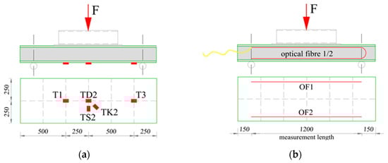 During the experimental tests, force, deflections, and strains were measured. All research was carried out in the laboratory of the Faculty of Civil Engineering, Environmental Engineering, and Architecture at Rzeszow University of Technology (Poland).
