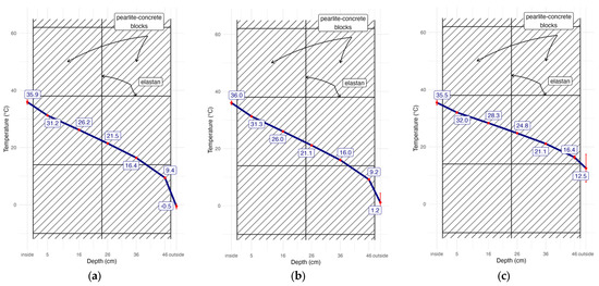 Temperature in the partition recorded: (a) on 20 January 2023, (b) on 1 March 2023, (c) on 1 May 2023 [32].