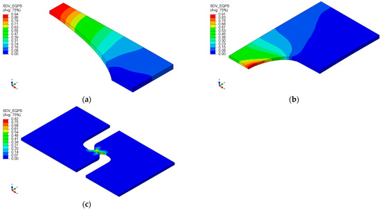 Contour plots of equivalent plastic strain (a) NT; (b) PST; (c) SH.