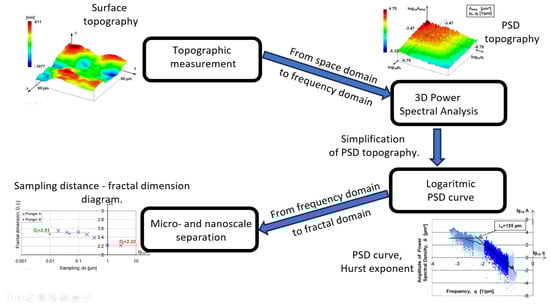 3D topographic measurements were used to determine the fractal dimension. 3D PSD analysis was performed for the evaluation. Figure 5 represents the basic steps of the applied method and mathematical details can be found in [23].