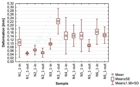 - The largest values of deviations with a large spread were obtained for sample N3_1. It should be mentioned here that the input side presents two times lower deviations in comparison with the output side;