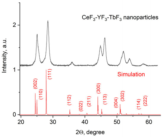 The X-ray diffraction pattern of the Ce0.5Y0.35Tb0.15F3 powder is presented in Figure 1.