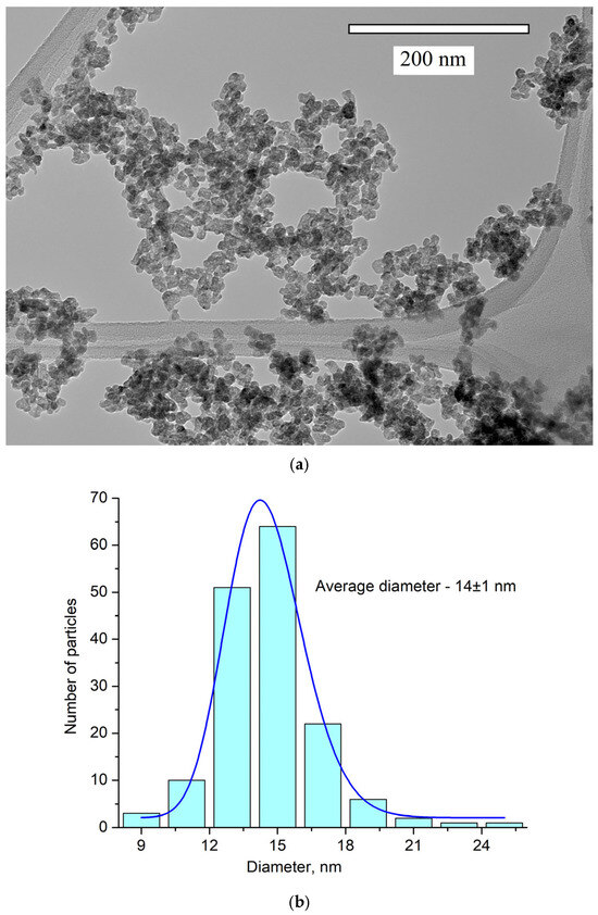 The nanoparticle shape is not perfectly spherical. The average diameter of the nanoparticles is 14 ± 1 nm. Nanoparticles of this size can be used for biomedical applications [3].