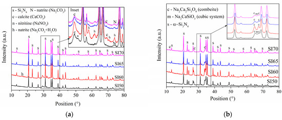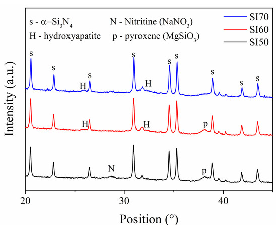 - Lukianova, O.A.; Parkhomenko, A.A.; Krasilnikov, V.V.; Khmara, A.N.; Kuzmenko, A.P. New Method of Free Silicon Determination in Pressureless Sintered Silicon Nitride by Raman Spectroscopy and XRD. Ceram. Int. 2019, 45, 14338–14346. [Google Scholar] [CrossRef]