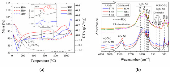 - Finocchiaro, C.; Barone, G.; Mazzoleni, P.; Leonelli, C.; Gharzouni, A.; Rossignol, S. FT-IR Study of Early Stages of Alkali Activated Materials Based on Pyroclastic Deposits (Mt. Etna, Sicily, Italy) Using Two Different Alkaline Solutions. Constr. Build. Mater. 2020, 262, 120095. [Google Scholar] [CrossRef]
