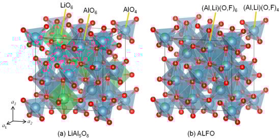 Crystal structures of (a) ordered LiAl5O8 and (b) aluminum lithium fluoride oxide (ALFO) after Rietveld analysis.