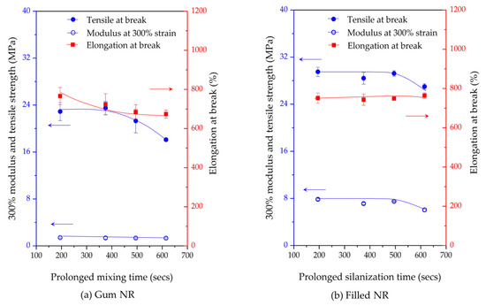 12]. The degradation of unfilled NR compounded at a high mixing temperature of 180 °C was studied. It was reported that an increase in the mixing time from 5 to 10 min at a certain mixing temperature led to the significant degradation of such unfilled NR compounds [