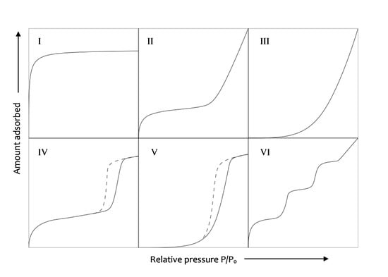- Brunauer, S.; Emmett, P.H.; Teller, E. Adsorption of Gases in Multimolecular Layers. J. Am. Chem. Soc. 1938, 60, 309–319. [Google Scholar] [CrossRef]