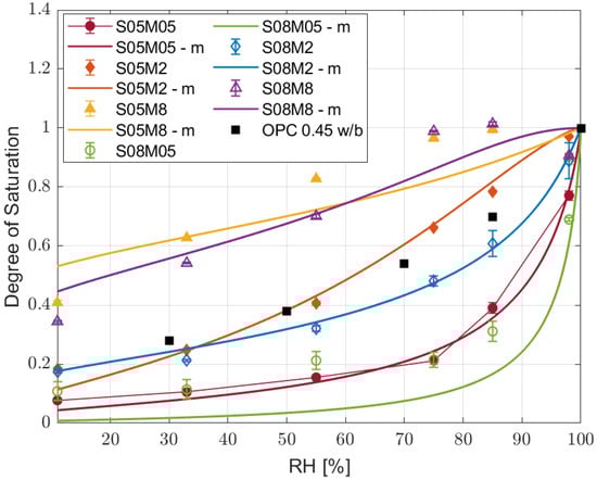 - Baroghel-Bouny, V. Water Vapour Sorption Experiments on Hardened Cementitious Materials. Cem. Concr. Res. 2007, 37, 414–437. [Google Scholar] [CrossRef]