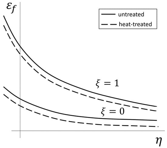 Upper and lower bound of the fracture locus for untreated and heat-treated materials.