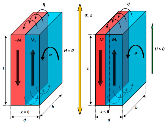 of the two domains’ magnetostatic interaction, it was assumed that the magnetic moment of one domain is the source of the magnetic field of antiparallel direction to the magnetization in the outer region. The magnetic moment of the second domain is immersed in this field; thus,