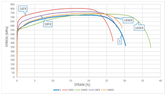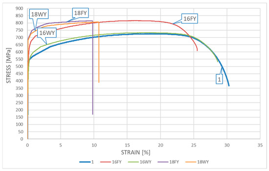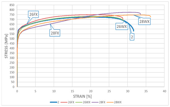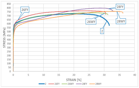The results obtained during the tests are presented here on the stress–strain graphs prepared separately for each tested steel grade.
