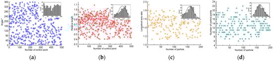 Identification results of feature parameters. (a) feature angles; (b) relative length; (c) long-axis/short-axis ratio; (d) the number of control points.