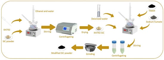 - Liu, Y.; Liu, J.; Yang, T. Surface Modification of SiC Powder with Sodium Humate: Adsorption Kinetics, Equilibrium, and Mechanism. Langmuir 2018, 34, 9645–9653. [Google Scholar] [CrossRef]