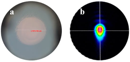 The quality of YSGG was evaluated using the properties of crystallinity, thermal conductivity, optical homogeneity and concentration distribution along the axial direction. The results of the measurements are as follows. Er: YSGG with the dimensions of Φ 2 × 10 mm3 was well polished to measure the Laue spot along the crystal. We used an X-ray Laue Back-Reflection system to obtain Laue spots, and the end face of the polished crystal was fixed on the three-axis stage. Considering the dimension of SCF, the distance of the sample and tube is 125 mm. When the single crystal is exposed to continuous X-ray irradiation, it will generate a regular distribution pattern known as spots on the photographic plate. As seen in Figure 3, the Laue spots are legible and well aligned. It means that Er: YSGG SCFs have excellent crystallinity and a high quality.