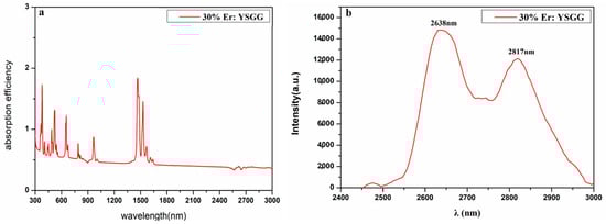 Fluorescence spectra of 30 at% Er: YSGG ((a) absorption spectrum; (b) emission spectrum).