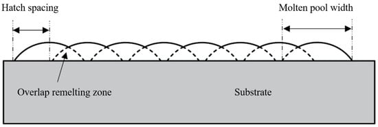 Apart from this reason, when the overlapping ratio was too small, the strength between each scan line decreased. Moreover, when the distance between each scan line increased, the molten pool was unlikely to flow to the overlapping zone before its solidification. It caused the formation of large voids in the overlapping zone which decreased the porous density of the printed part. The schematic diagram is shown in Figure 8.