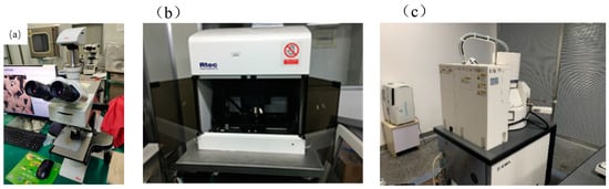 The optical microscope (a), white light interferometer (b), and scanning electron microscope (c) used in this work.