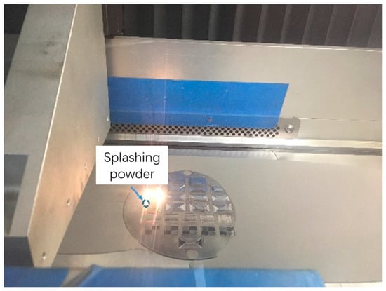 The reason why the value of porous density was quite small when the hatch spacing was in the range from 0.02 mm to 0.04 mm can be explained by the porous formation in the printing process under a low hatch spacing value. With the decrease in the hatch spacing, the overlapping ratio had an increasing trend. When the overlapping ratio was too high, the heat convection showed a confusion trend. It resulted in the increasing nonuniform temperature distribution of the molten pool which further led to the powder splashing in the printing process on the overlapping zone shown in Figure 7. Powder splashing that happened in the forming process not only affected the quality of the printing layer, but also caused the unevenness of the layer which resulted in a decrease in the overall performance of the printed part.