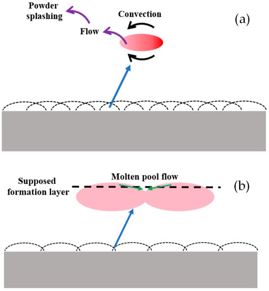 Schematic diagram of the sample printed under small hatch spacing (a) and large hatch spacing (b), respectively.