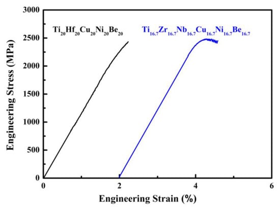 | 5 | Ti20Zr20Hf20Cu7.5Ni12.5Be20 | 632 | 684 | 951 | 1040 | 2124 | 30 | 14.53 | 2015 [38] |