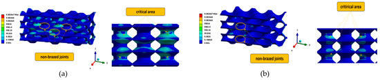 Von Mises equivalent stress in the analysed PHE-structures: (a) VNBJD structure; (b) TNBJD structure.
