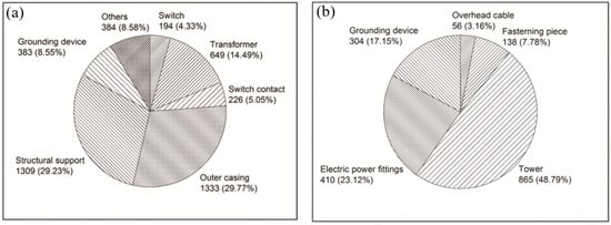 (a) Number of corrosion cases of power transformation equipment. (b) Number of corrosion cases of power transmission equipment [].