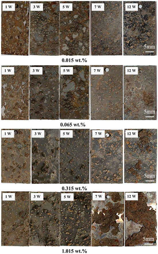 Carbon steel exposed to soil with different chloride ion concentrations for 1, 3, 5, 7, and 12 weeks [].
