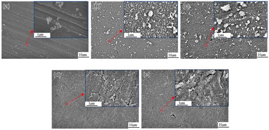 SEM corrosion-product images of X80 steel samples after 2 h in NS4 solution under various DC densities without strain: (a) iDC = 0 mA/cm2, (b) iDC = 0.25 mA/cm2, (c) iDC = 0.5 mA/cm2, (d) iDC = 1 mA/cm2, (e) iDC = 2 mA/cm2 [].