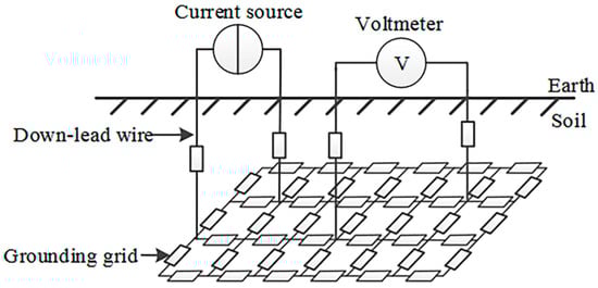 A grounding grid is an important device used in substations for work grounding, lightning grounding, and protective grounding, to ensure the safety of people, equipment, and systems [,,]. In the case of a lightning strike or power system failure that releases a large amount of current to the ground, the grounding grid plays a role in quickly dissipating the current and reducing the contact voltage and step voltage [,]. It can effectively safeguard the stable operation of the power system and enhance the safety of personnel and equipment.