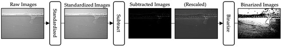 Flowchart illustrating filtering procedures. The subtracted image is rescaled for better representation in the following image, no re-scaling was involved in the “Subtract” and “Binarize” steps.