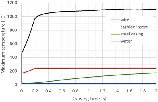 - Initial temperature: water 20 °C, drawing die housing 20 °C, insert 20 °C, wire 100 °C;