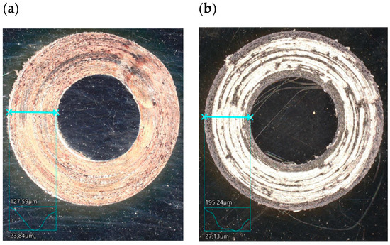 Drawing technology is the determining factor for using a particular type of drawing dies. The drawing die is built with a steel casing to protect the drawing die core from mechanical damage. In steel wire wet drawing, drawing dies with tungsten carbide or diamond inserts are used, while special ceramic coatings are also applied to the tungsten carbide surfaces to increase their durability. On the other hand, in dry wire drawing, with wire diameters over 1 mm, tungsten carbide inserts are usually used for financial reasons. Drawing dies used in wire manufacturing are also classified according to the shape of the drawing part, i.e., concave, convex sigmoid, curved and conical dies. Drawing dies can also be divided according to the drawing method, i.e., conventional, hydrodynamic [6,7], and roller dies [8,9]. Hence, when designing the drawing process, a specific type of drawing die is selected based on the surface treatment of the wire (mechanical descaling, pickling) [10,11,12], the application of lubricant layers, the type of wire drawing machine (dry drawing, wet drawing), the wire diameter, and the number of draws [13,14,15].