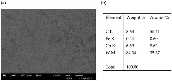 - Bonny, K.; De Baets, P.; Vleugels, J.; Huang, S.; Van der Biest, O.; Lauwers, B. Impact of Cr3C2/VC addition on the dry sliding friction and wear response of WC-Co cemented carbides. Wear 2009, 267, 1642–1652. [Google Scholar] [CrossRef]