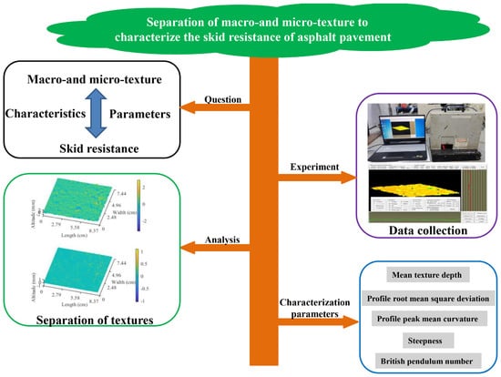 This paper is to comprehensively investigate contributions of macro- and micro-texture to the skid resistance of asphalt pavement through the separation of macro- and micro-texture and the Monte Carlo algorithm, which can reveal the interior mechanism and the specific relationship between pavement textures and the skid resistance of asphalt pavement. The diagram of research objectives and the method are shown in Figure 1, and there are four objectives in this paper as follows.