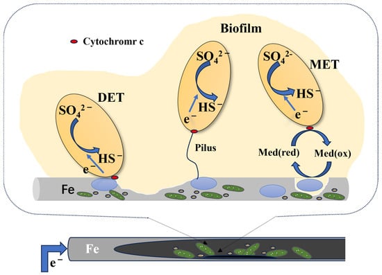 - Mehanna, M.; Basseguy, R.; Delia, M.; Gubner, R.; Sathirachinda, N.; Bergel, A. Geobacter species enhances pit depth on 304L stainless steel in a medium lacking with electron donor. Electrochem. Commun. 2009, 11, 1476–1481. [Google Scholar] [CrossRef][Green Version]