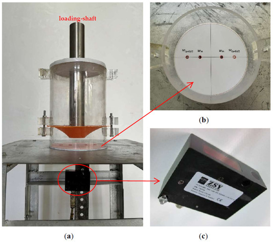 - Measure the displacement L by which the screw rod is moved, the steady delamination radius a, and the steady thin-film deflection wm and w(a+b)/2 (see Figure 1b) of the steady shaft-loaded blistering thin film, where the displacement L can be measured with a micrometer screw, the deflection wm and w(a+b)/2 can be measured with a laser displacement sensor (see Figure 5 for details), and the delamination radius a is exactly located at the point where the thin-film deflection is zero and thus can be measured with the laser displacement sensor and micrometer screw;