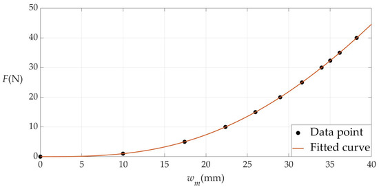 The fitted analytical function for the load-deflection analytical relationship F(wm) is provided by