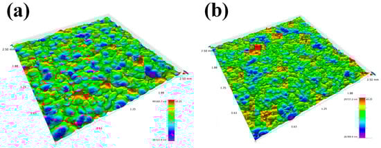 In addition, the 3D surface topographies of the two kinds of samples are shown in Figure 3a,b, respectively. Notably, CSP and DSP both bring about rough surfaces with numerous peaks and dents. Compared to the CSP sample shown in Figure 3a, the dents on the DSP sample, shown in Figure 3b, are smaller and denser. The detailed surface roughness values were obtained in Table 3. After CSP, the surface roughness values, Ra and Rz, are 4.76 and 31 μm, respectively. By applying the DSP technique, the surface roughness values, Ra and Rz, decreased to 2.53 μm and 12 μm, respectively. The Rz value was significantly reduced by 61.5%. It suggests that micro-ceramic shots weakened the height of the extruded ridges induced by CSP. It is widely accepted that the increase in surface roughness will enlarge the stress concentration factor and accelerate the initiation of fatigue sources to the surface of the material [32], thus deteriorating the fatigue properties, corrosion resistance, and corrosion fatigue. Consequently, in most cases, the control of surface roughness of shot-peened components is an effective strategy to prolong their service life in industry.