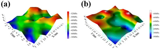 The residual stress distribution of samples’ top surfaces (a) after CSP (b) after DSP.