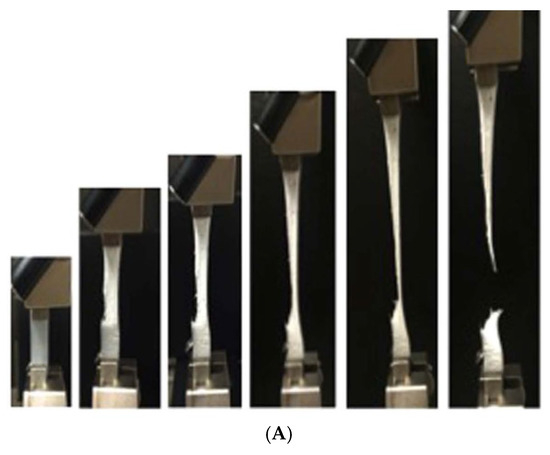 Cavitation in polymer specimens under tensile deformation leads to the formation of many voids in the material [117,118,119,120,121,122]. This phenomenon is somewhat different from the widely known acoustic (ultrasonic) or hydrodynamic cavitation in liquids, where the created “voids”, which are gas and vapor bubbles in this case, violently collapse, resulting in high temperatures and pressures inside the bubbles [123,124,125,126,127,128,129,130,131,132,133]. As polymer specimens are not fluids, created voids in polymer cavitation do not violently collapse in contrast to the cases of acoustic or hydrodynamic cavitation. Nevertheless, created voids play a considerable role in increasing the ionic conductivity of polymer electrolytes, as shown in Figure 17 [113].