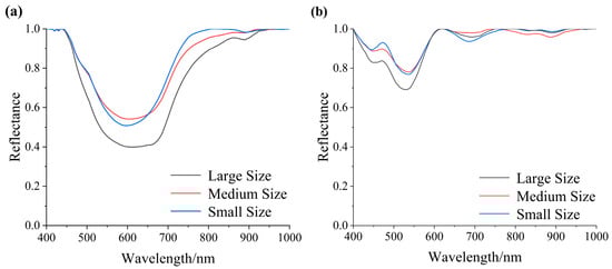 Spectra of different particle sizes: (a) lazurite and (b) ochre red.
