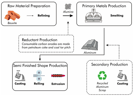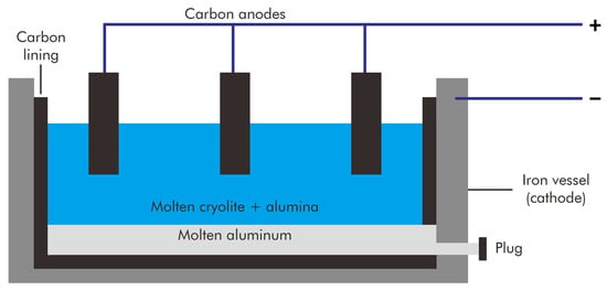 In the following sections, we describe the Hall–Héroult process and explain the technology applied during the production process to fully comprehend the operations of the global aluminum industry. Opportunities for the use of residues can then be determined, and we can identify constraints on integrating novel procedures for minimizing and reusing waste products.